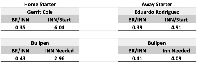 Then calculate the number of runs allowed by the projected starter by taking the ERA per inning times the projected average innings per start (Total Innings/Total Number of Starts).